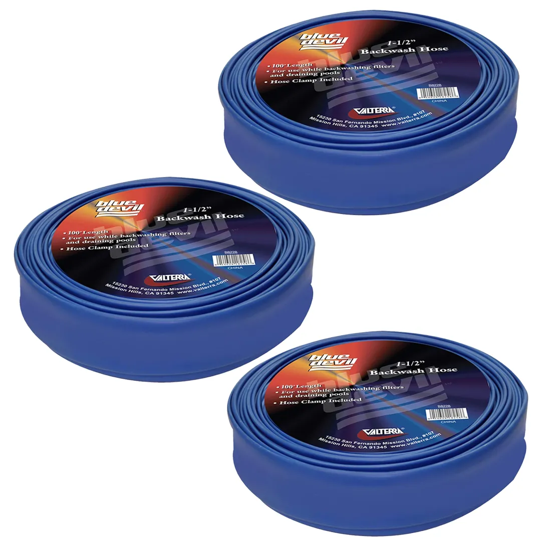 Blue Devil 3 Pack of 100ft., 1-1/2" Backwash Hose with Clamp, Shrink Wrapped (22 mil)