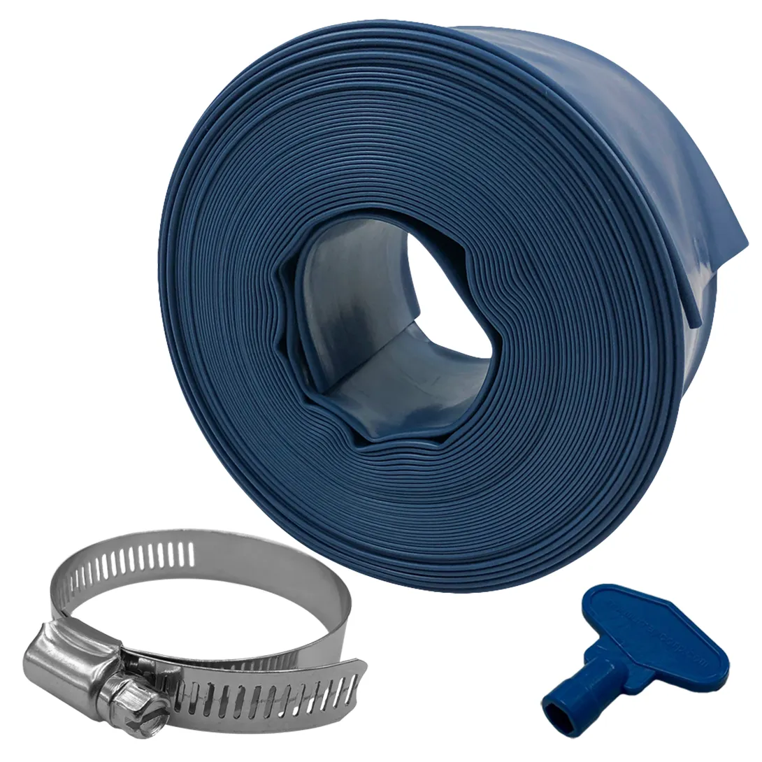 Puri Tech Heavy-Duty 2"x50ft Pool Filter Backwash Hose with Clamps - Weather and Chemical Resistant Vinyl