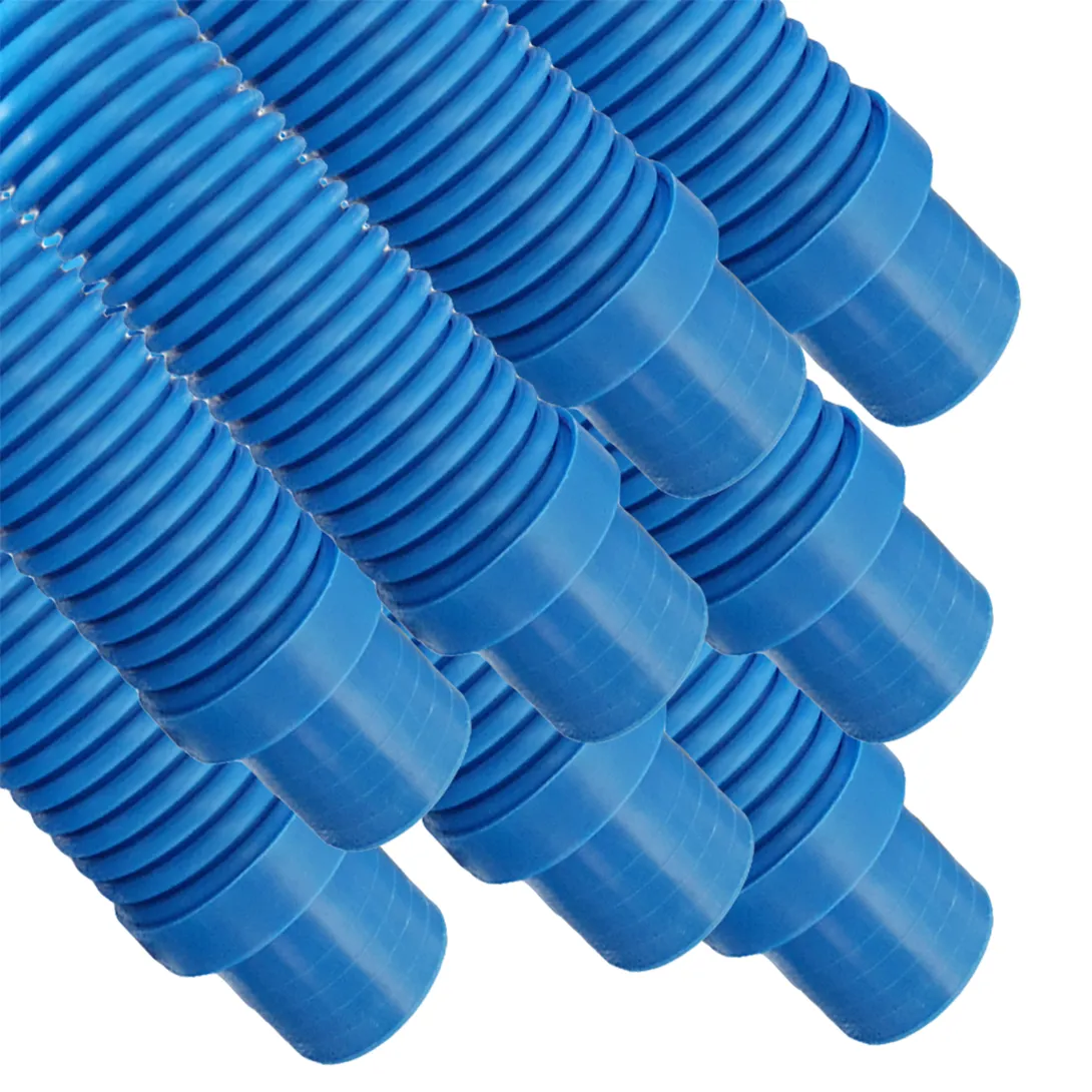 Keep your pool sparkling clean with this durable 8-pack of 1.5 x 4' blue pool cleaner hoses! This essential set offers a total of 32 feet of hose, ensuring your suction-side cleaner reaches every corner. Compatible with many popular cleaners, it's the perfect solution for a pristine pool. Product Features: