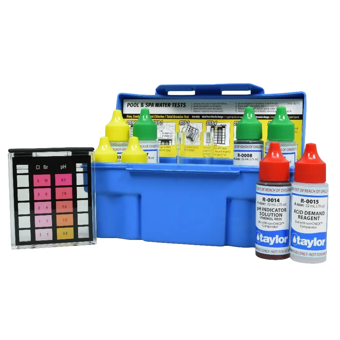 Taylor Technologies® 6-Way Test Kit for Free Chlorine, Total Chlorine, Bromine, pH, Alkalinity - 0.75 oz bottles