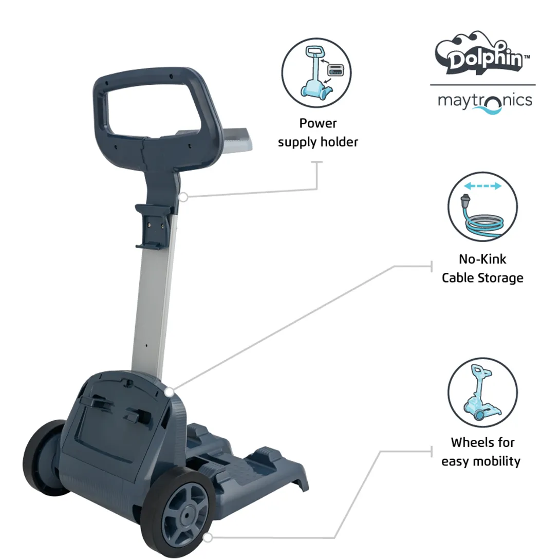 Effortlessly manage your Dolphin robotic pool cleaner with the Robot Caddy! This innovative caddy simplifies transport and storage, protecting your investment and keeping your pool sparkling. Enjoy easy operation and maintenance for a pristine pool. Product Features: