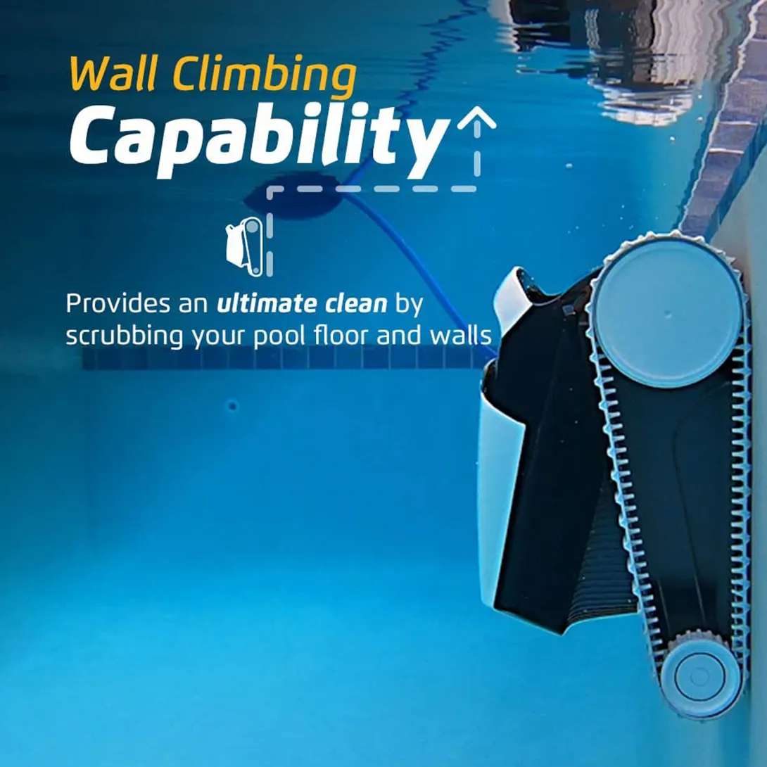 Features powerful wall climbing capabilities to scrub the floor and walls of your pool no matter the pool shape or surface type.