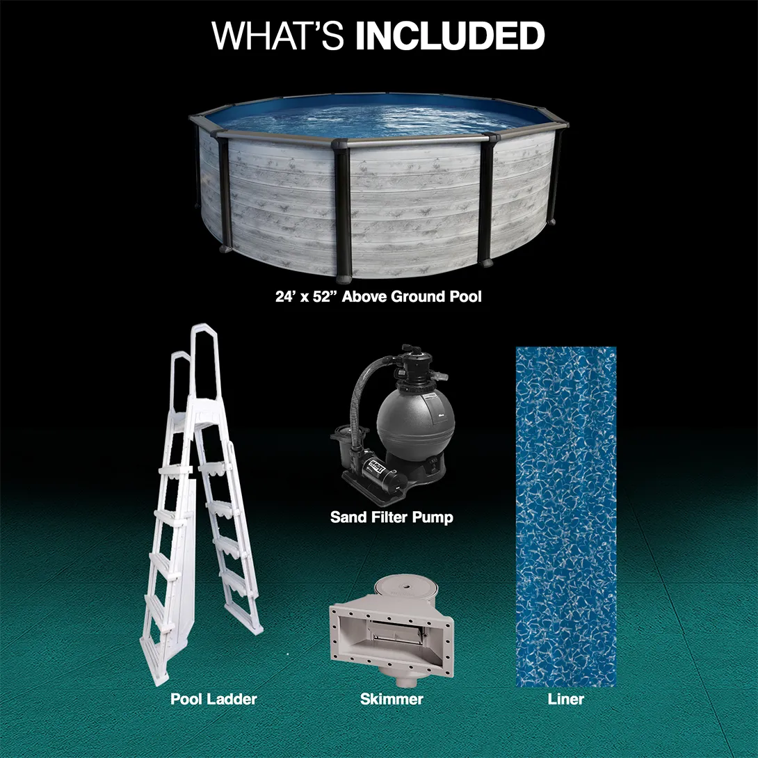 Puri Tech 24 ft. x 52" Round Hollywood Above Ground Pool Package