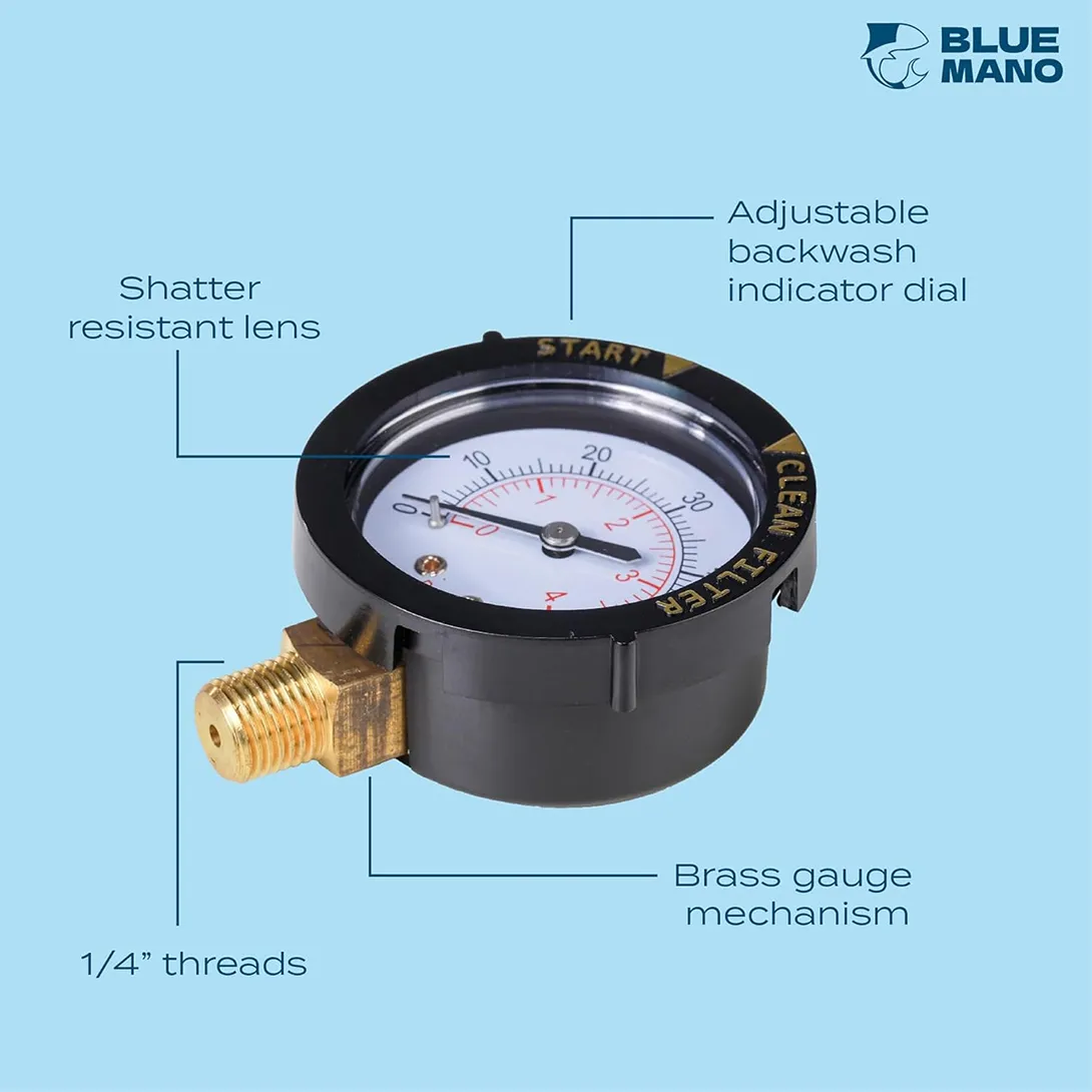 Blue Mano 1/4" Bottom Mount Pressure Gauge