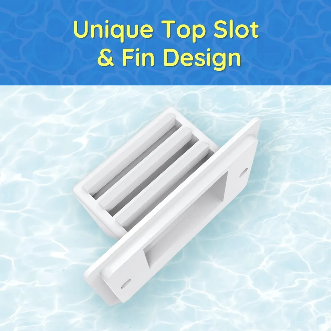 Safeguard Your Pool with a Splash Guard: The Splash Guard is an easy-to-install and durable replacement for standard overflow drain covers in swimming pools. It features top slots and fin designs that prevent water loss due to splashing while keeping debris out of the drain line.